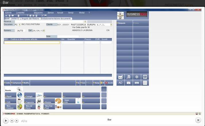 UN SISTEMA UNICO E CONDIVISO Businesspass rappresenta un innovativo sistema di applicazioni gestionali cloud computing per una reale gestione collaborativa tra Commercialista e Impresa. La soluzione integra applicazioni dedicate allo studio, soluzioni per Piccole e Medie Imprese e soluzioni per specifici settori di mercato: negozi, hotel, ristoranti, bar, centri benessere. E’ l’unico sistema dotato sia delle funzionalità contabili, fiscali e dichiarative necessarie al Professionista, sia di quelle amministrative e gestionali per le aziende clienti. Businesspass gestisce in modo integrato il processo amministrativo e gestionale dello Studio, reperendo le informazioni e i dati direttamente dai clienti senza bisogno di trasferimenti fisici o digitali, fornendo a tutti gli attori coinvolti le applicazioni ed i servizi indispensabili alla sua attività, in un ambiente operativo unico e condiviso.